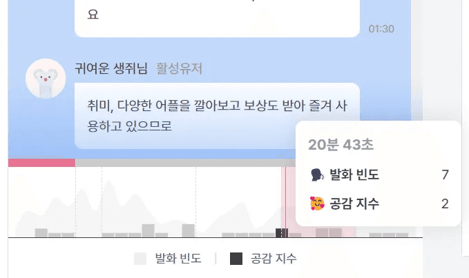 유저스푼 FGD 웹 리포트에서 공감지수가 높았던 대화 시점을 확인할 수 있다.
