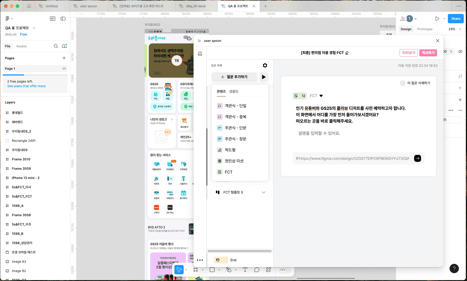 FCT 미션형 콘텐트에서 테스트 대상 피그마 프레임 링크를 입력