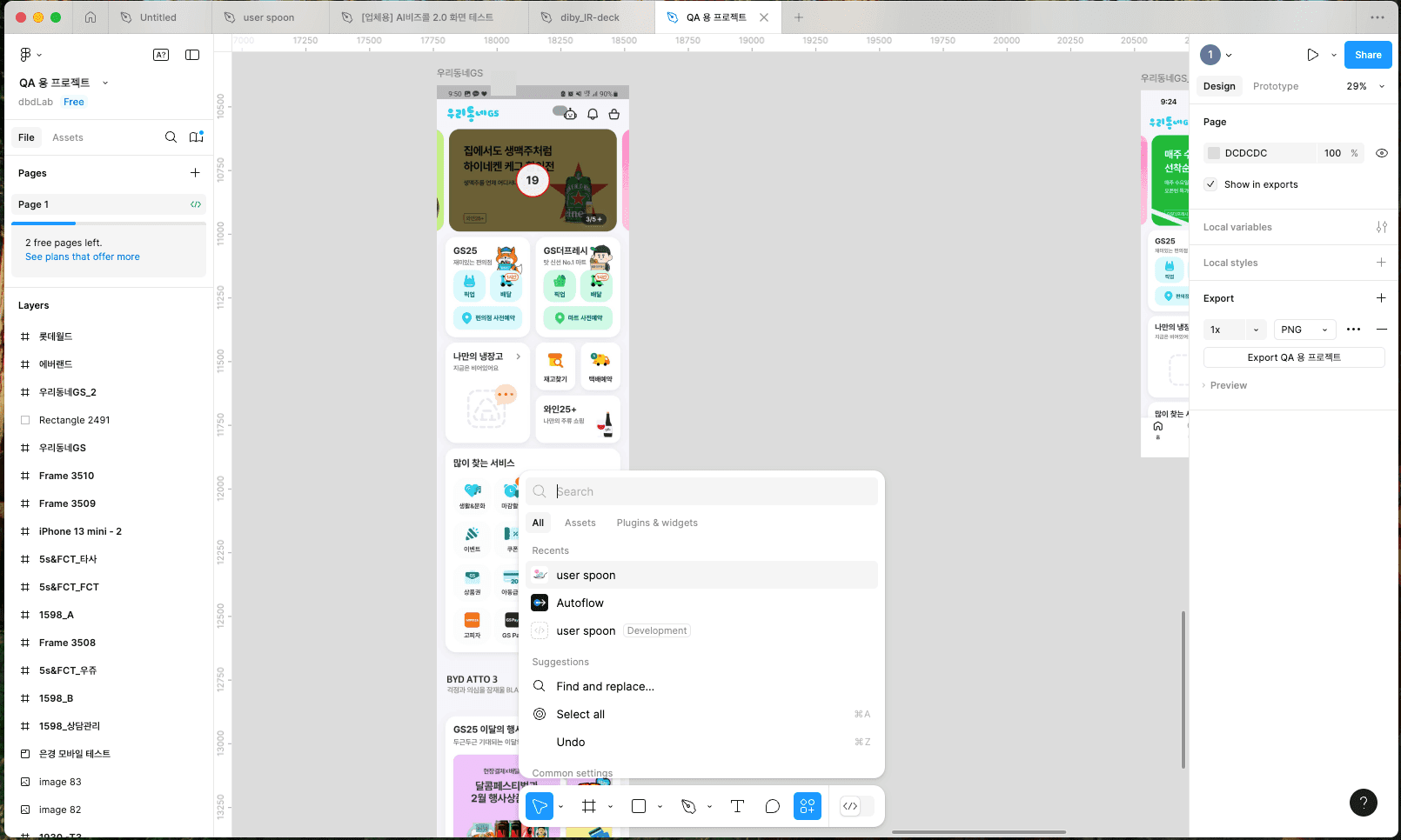 피그마 작업공간에서 유저스푼 피그마 플러그인을 실행