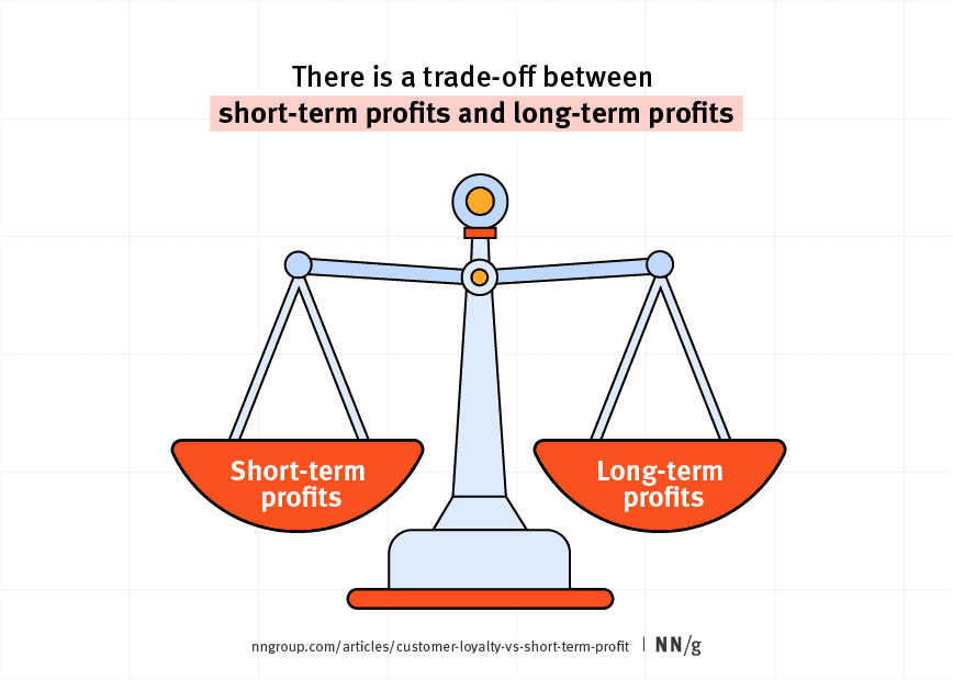 당장의 이익을 위해 현실과 타협하는 순간 서비스의 장기적인 이익은 희생된다.그래서 닐슨노먼그룹의 Tim Neusesser은 단기이익을 쫓기보다 고객을 먼저 생각하라고 조언한다.