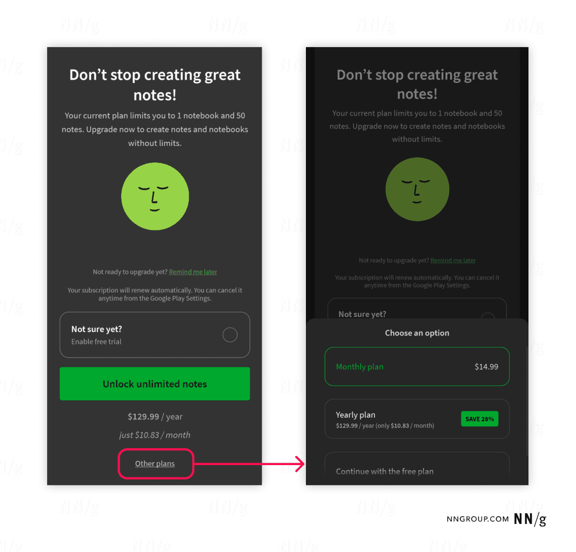 Evernote(노트 및 할 일 관리 앱)는 무료 요금제를 제공하면서도 장기적인 수익을 창출하는 전략을 사용했다.