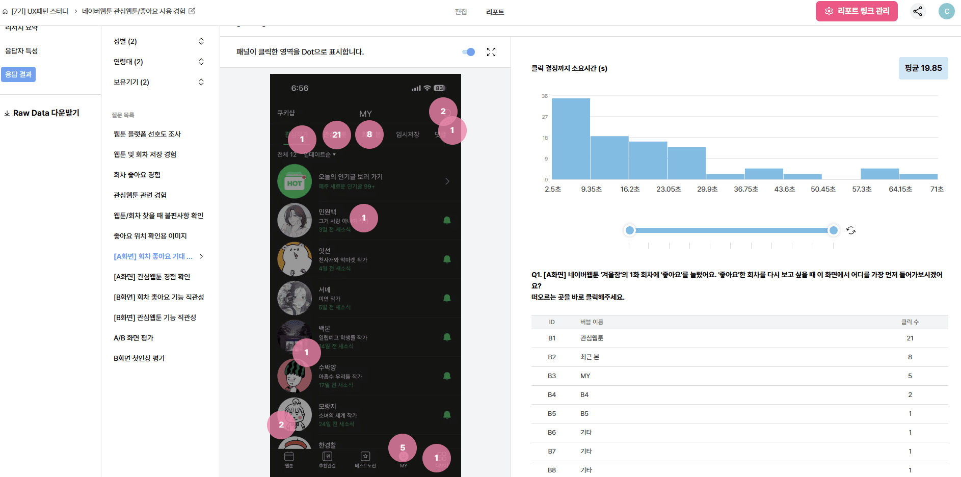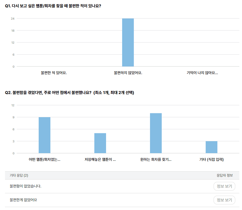 ‘불편함이 있었는가’를 묻는 문항에서 ‘불편하지 않았다’는 응답이 예상보다 많아서 놀랐어요. 실제 네이버 웹툰 앱 리뷰에서는 반복적으로 문제 상황이 제기됐던 지점이었기에, 분명 문제가 있다고 생각했거든요.