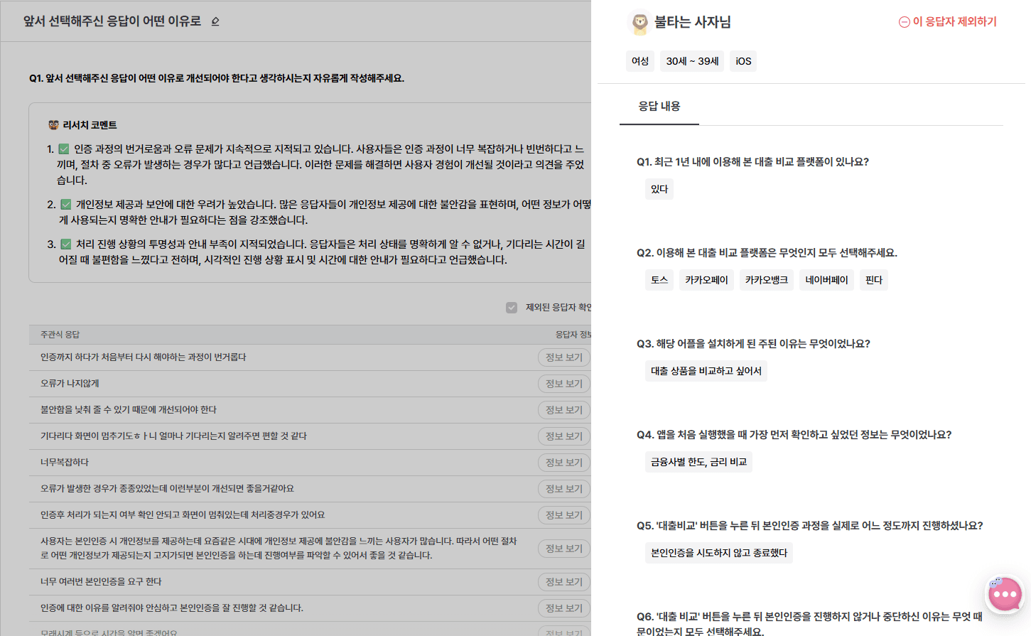*응답자별 응답을 모아 맥락을 따라가며 분석할 수 있는 기능